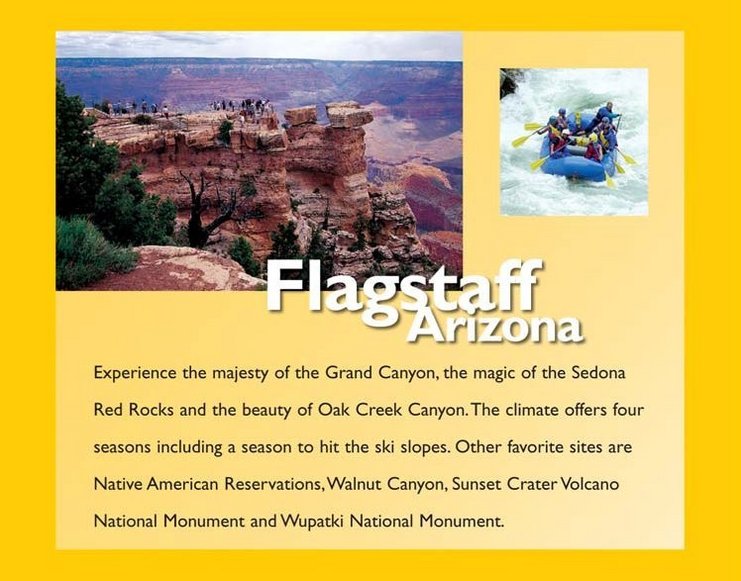 the Grand Canyon and it's Railway, Meteor Crater, Lake Powell, Lowell Observatory, the Arboretum and