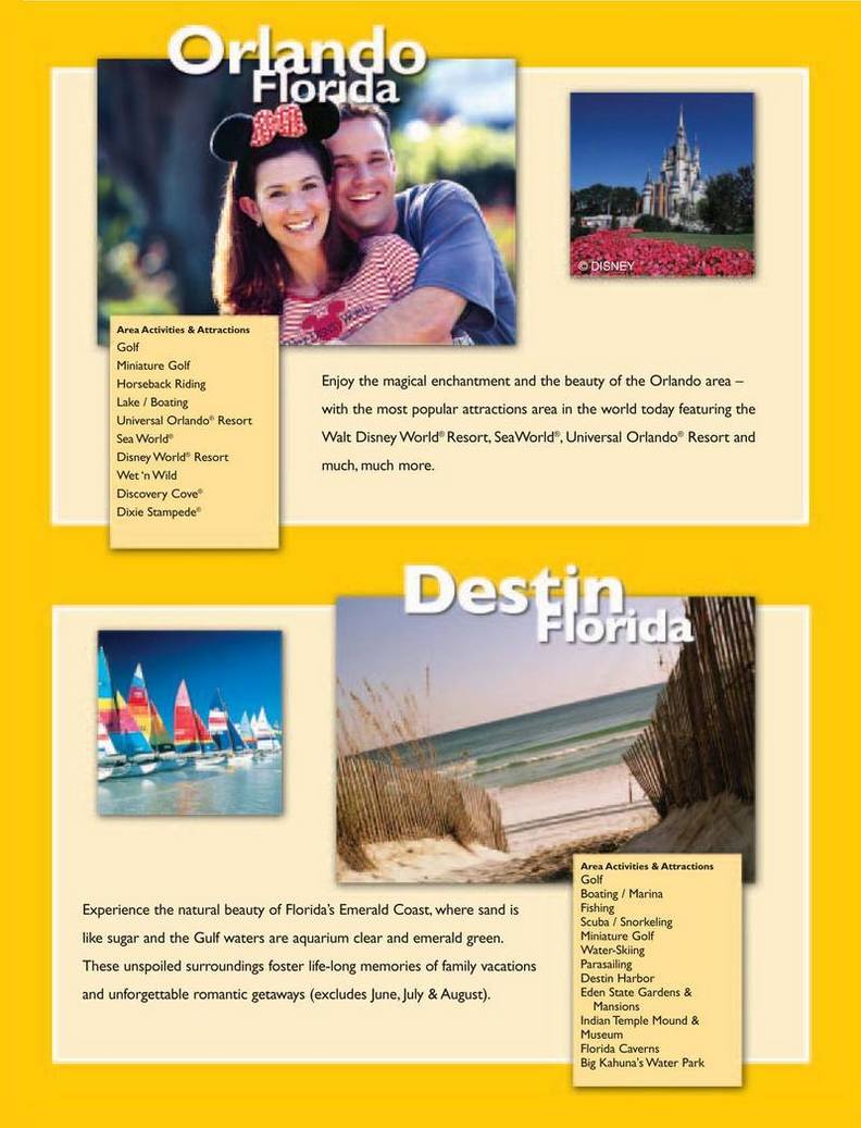The two-night package features these locations: Palm Beach Shores, Florida; Puerto Vallarta, Mexico; Daytona Beach, Florida; Big Island of Hawaii; St. Pete Beach, Florida; Williamsburg, Virginia;Orlando, Florida; Berkshire, Massachusetts; Las Vegas, Nevada;Gatlinsburg, Tennessee; San Diego, California; Palm Springs, California; Massanutten, Virginia; Ft. Lauderdale, Florida; and Branson, Missouri.